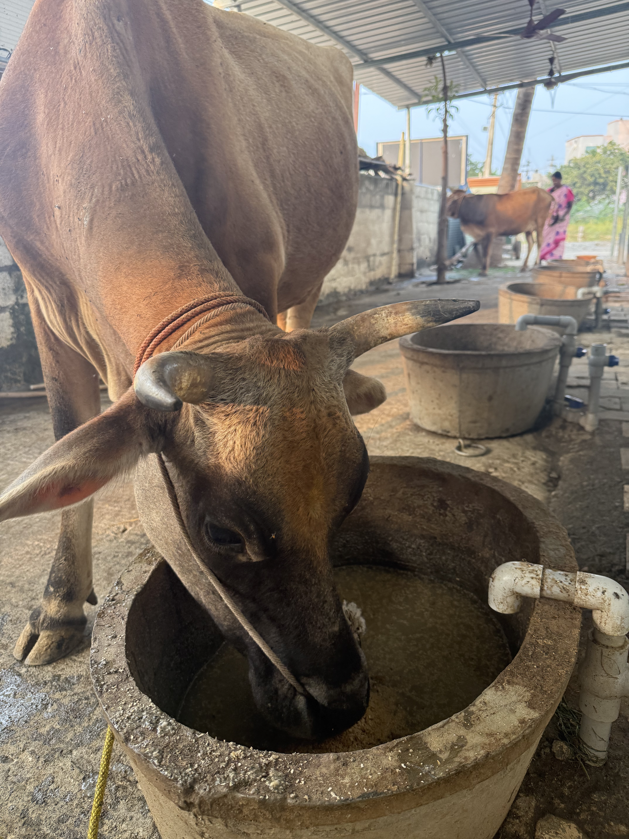 Participate in the sacred Cow Puja, honoring the divine gift of the cow, a symbol of nourishment, care, and sacredness. Your donation supports the ritual and the care of cows at the ashram, inviting blessings and spiritual merit.